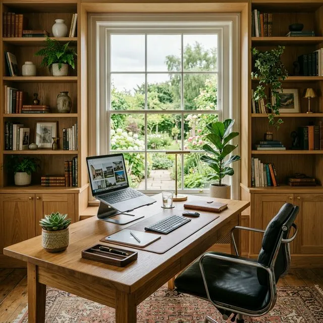 Das Home Office darf nicht wie ein Büro aussehen – es ist Teil Ihres Zuhauses. Warme Materialien wie Holz, Leder und Textilien schaffen Wohnlichkeit, ohne die Funktionalität zu beeinträchtigen. Pflanzen verbessern das Raumklima und die Kreativität. Eine Pinnwand oder ein Moodboard aus Kork gibt Inspiration, ohne den Schreibtisch zu überladen. Persönliche Gegenstände sind erlaubt und gewünscht – solange sie den Arbeitsfluss nicht stören und im Hintergrund von Videocalls professionell wirken.